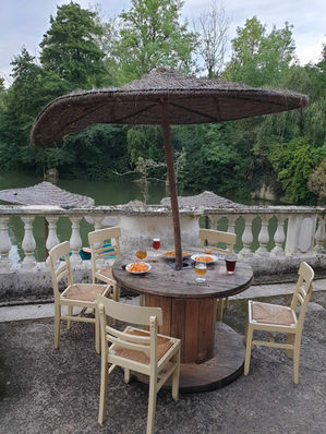 L'espace détente se situe au bord du bief du Moulin de Courcelles.